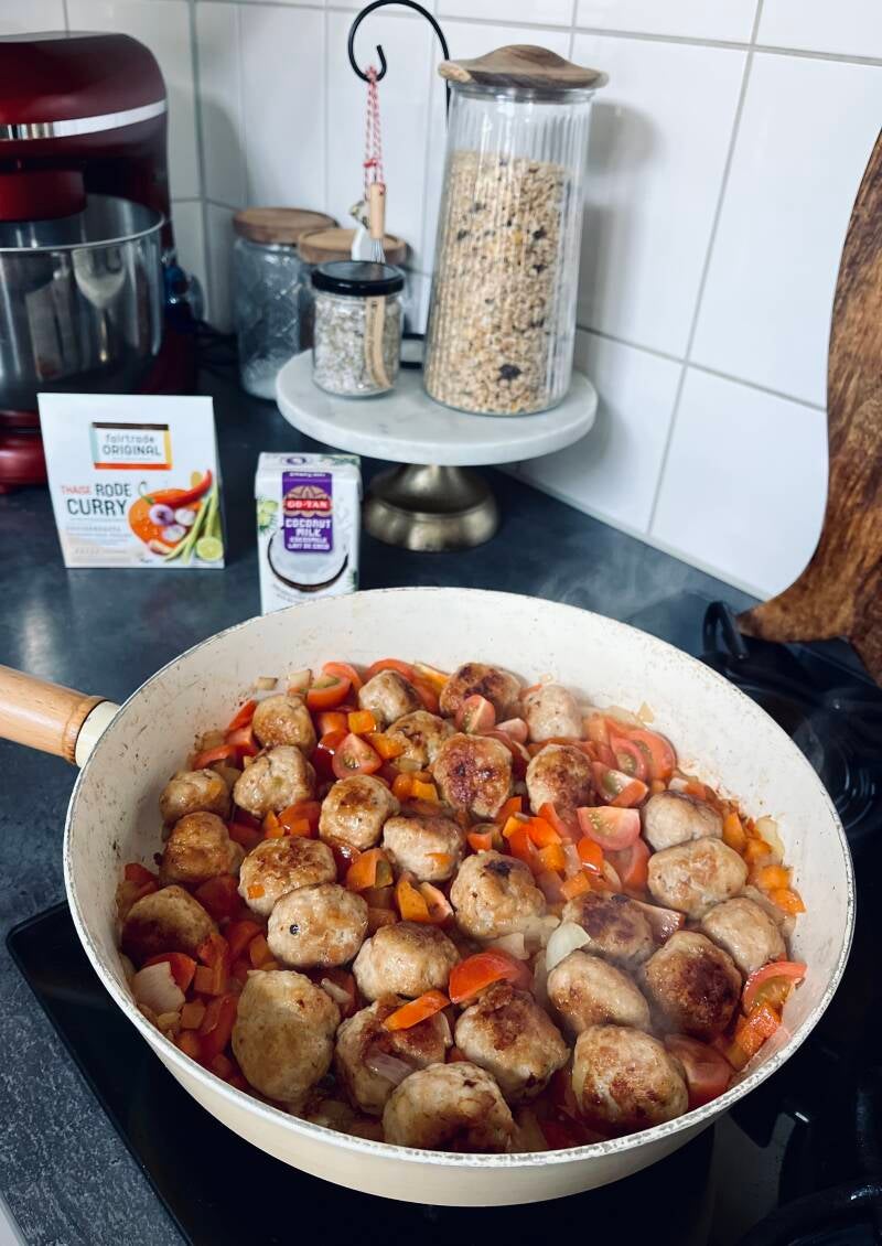 Rode Curry met kip gehaktballetjes